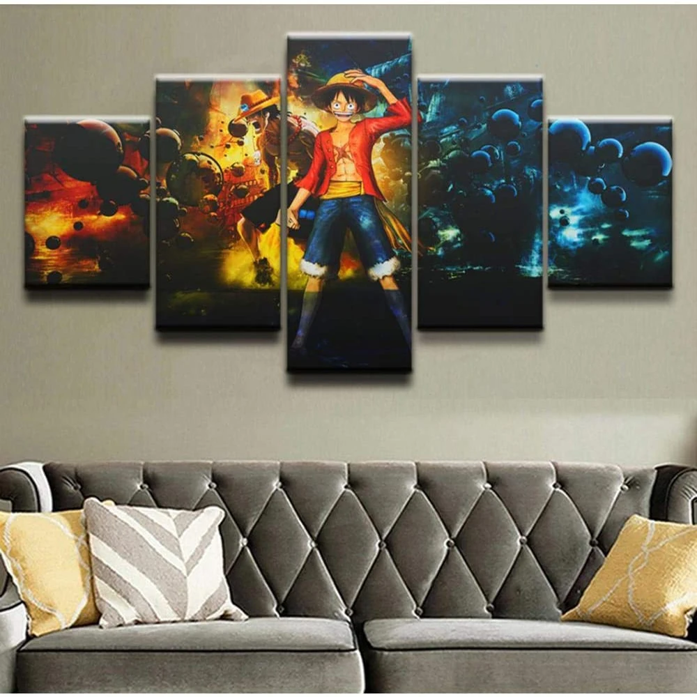 5 шт. картина на стену, полотно с рисунком из Аниме Манга и Короля Пиратов рисунок плакаты "Луффи" и картины Современное украшение для картины в спальню