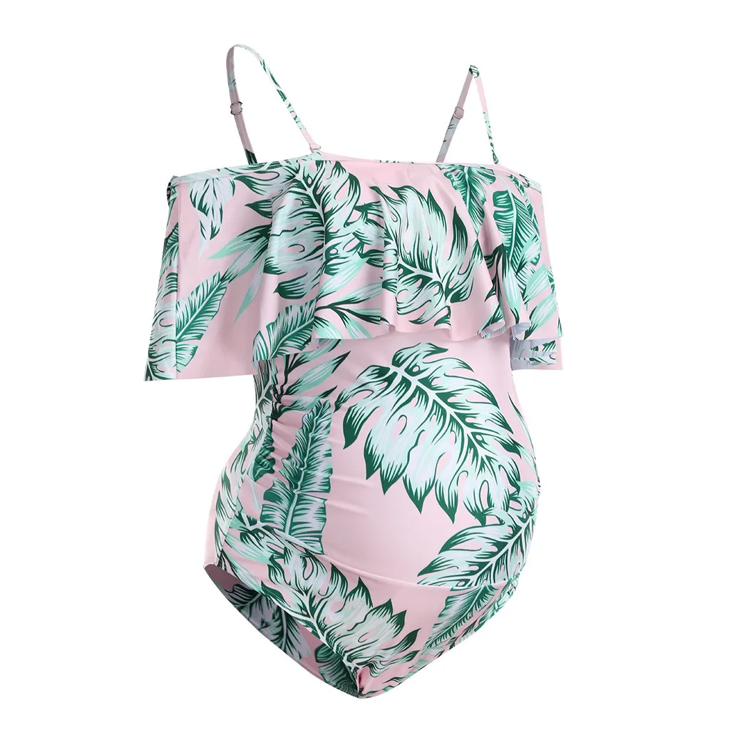 Беременности и родам Для женщин оборками с принтом листьев бикини купальник пляжный костюм для беременных Комбинезоны Купальники traje de bano #40