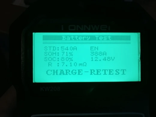 Нормальный приборчик. Проверил 2 стареньких аккумулятора, на одном нашем АКОМ 60 Ач 480А 5 лет, жизнеспособность 55%, на другом закрытого типа Delcor 55 Ач 610А - 57%, ему вообще 9 лет, а ещё дышит вполне неплохо и в мороз -27° крутит на автозапуске.