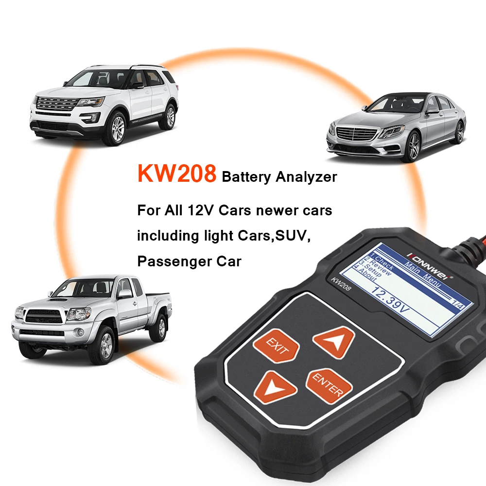 Тестер автомобильных аккумуляторов KONNWEI KW208, 12 В, от 100 до 2000CCA
