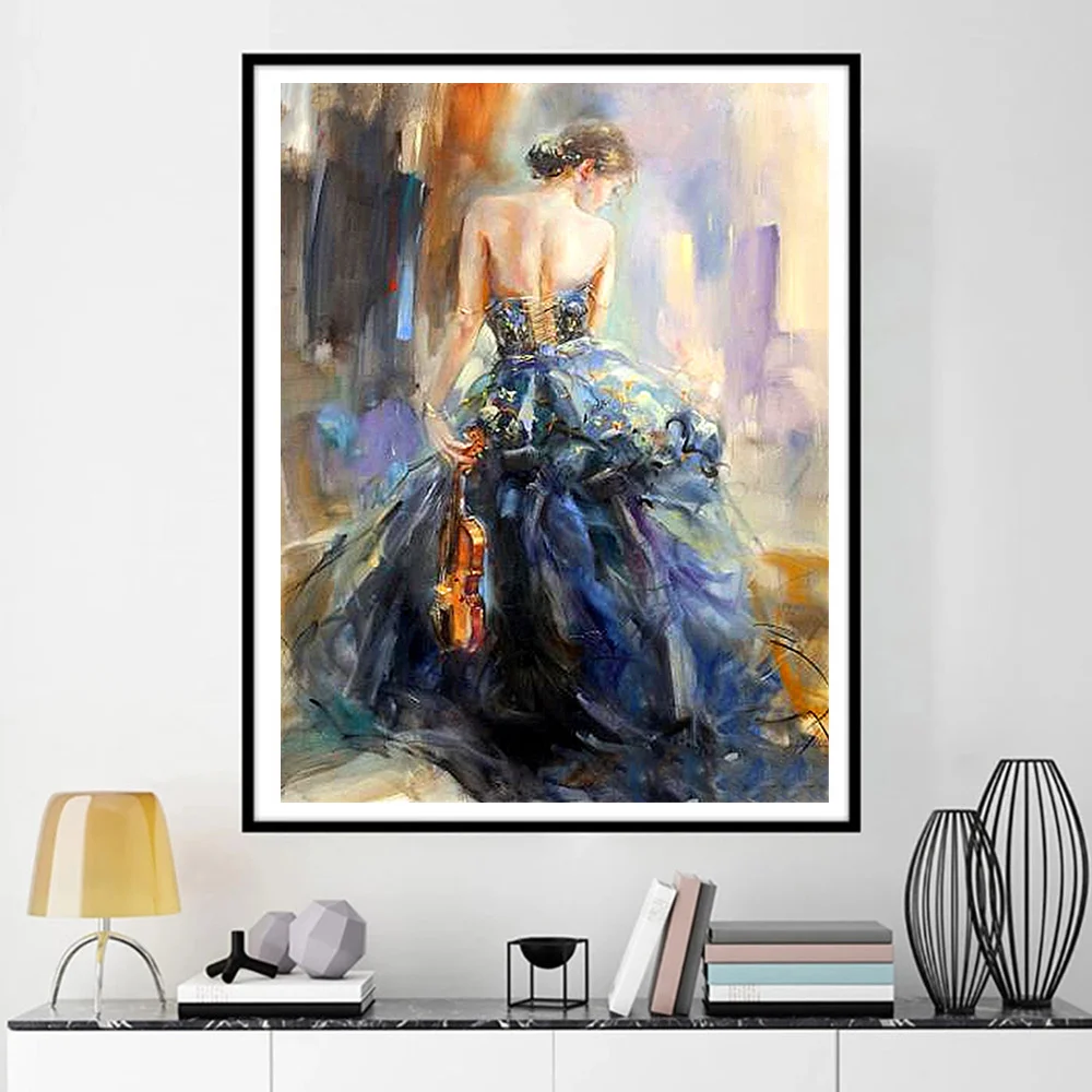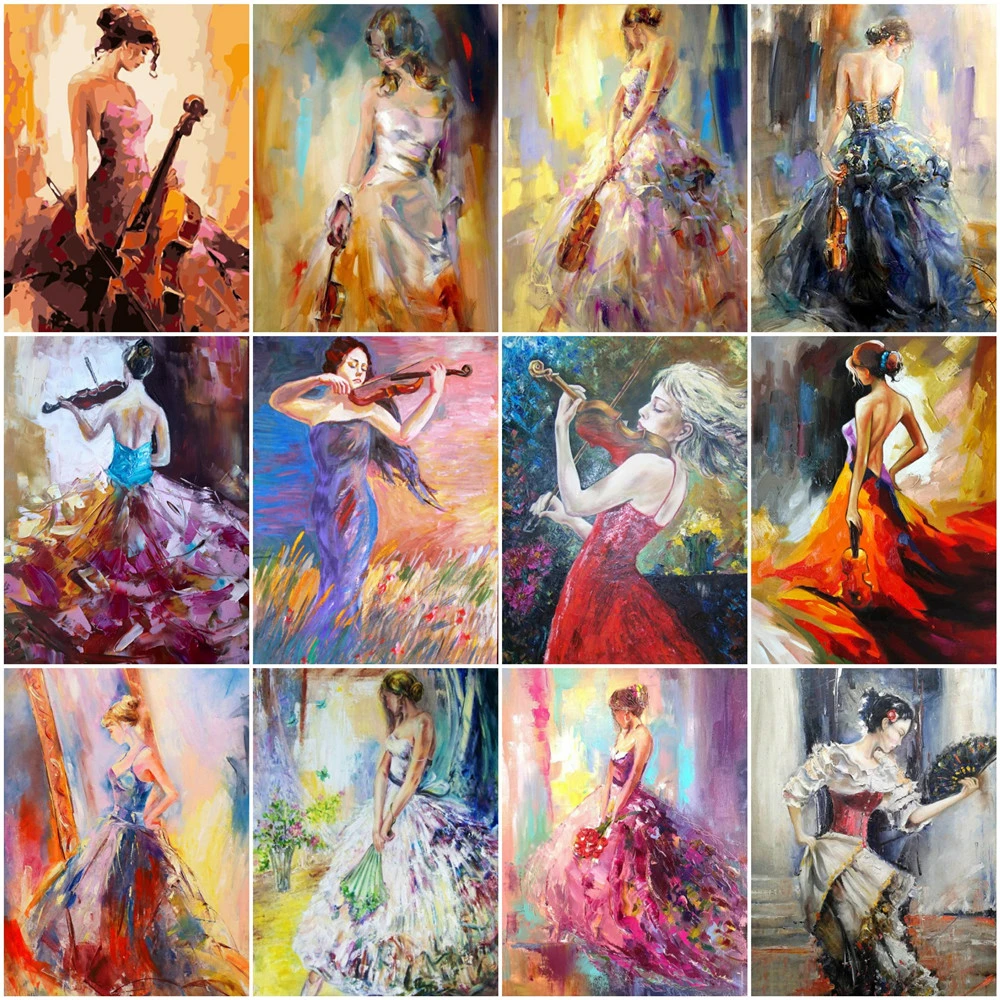 HUACAN картина по номерам скрипки женские акриловой живописи уникальный подарок картина маслом по номерам портрет Наборы ручная роспись современного искусства стены