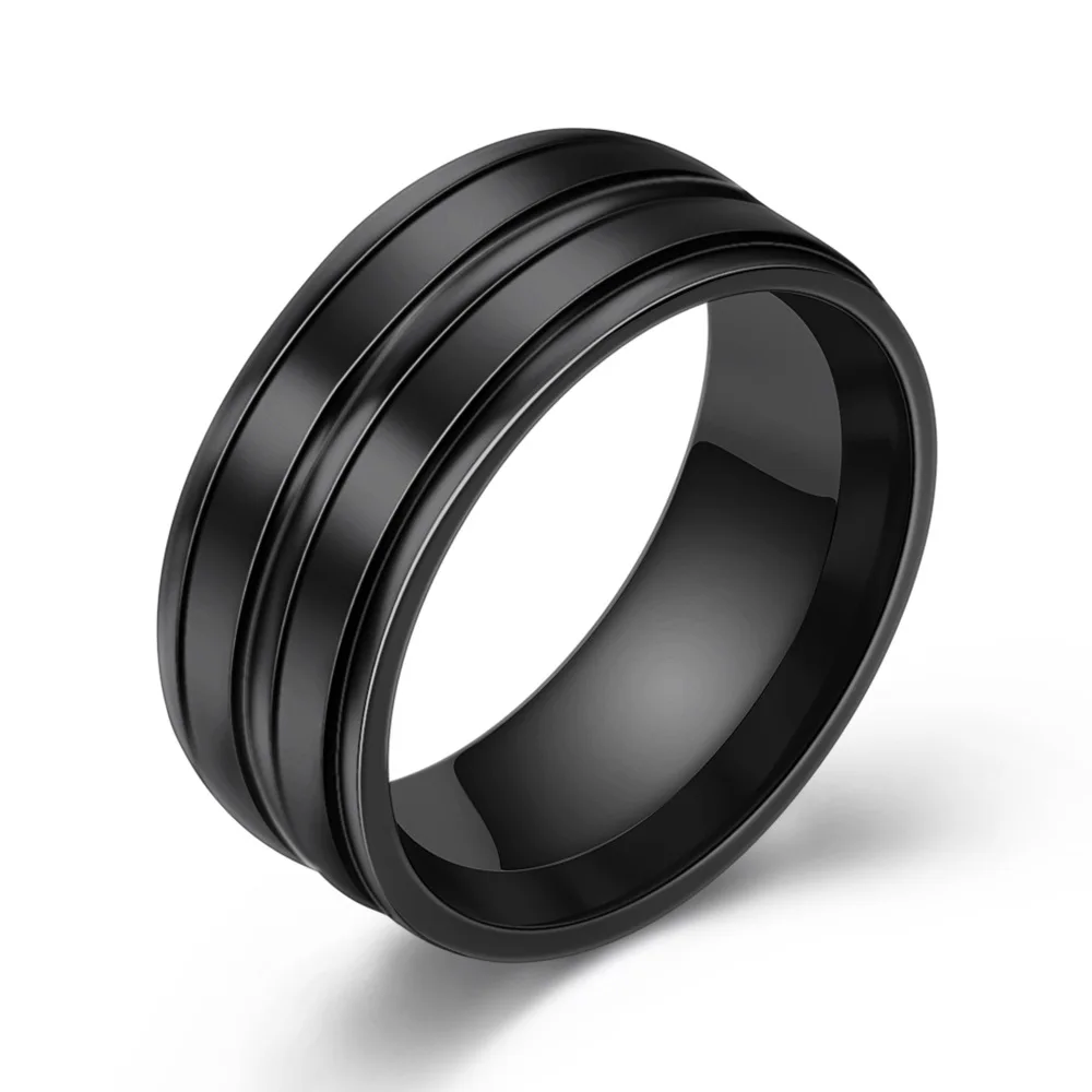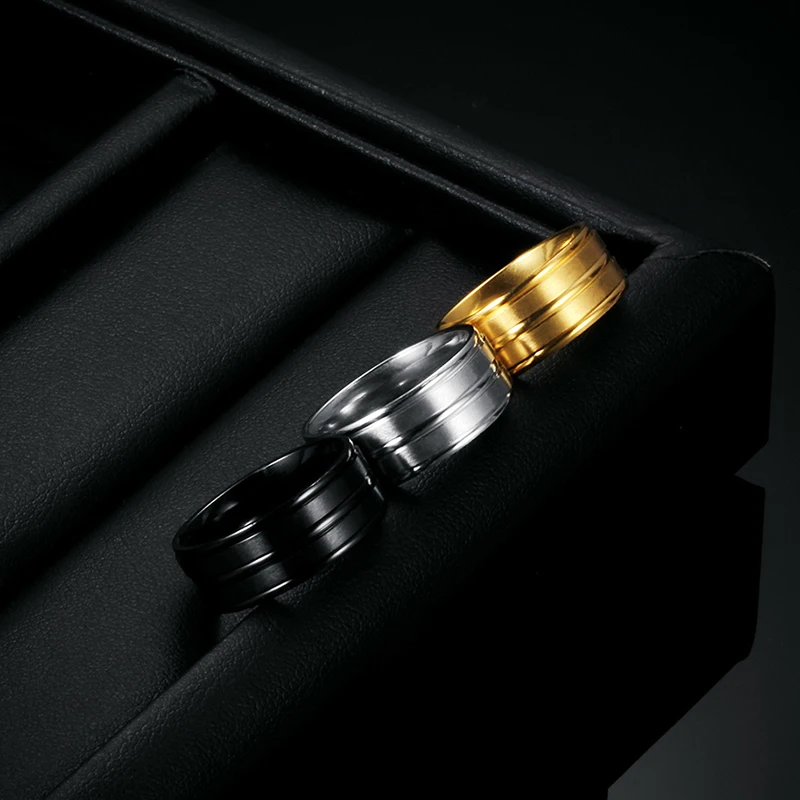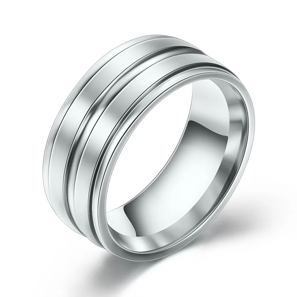 Кольцо мужское из нержавеющей стали, с двумя полосками