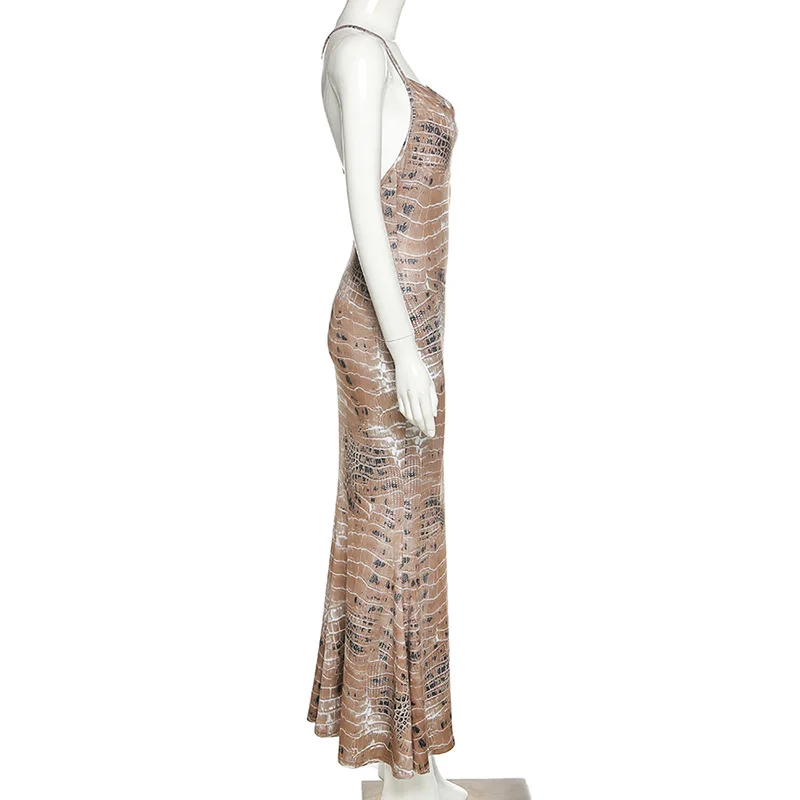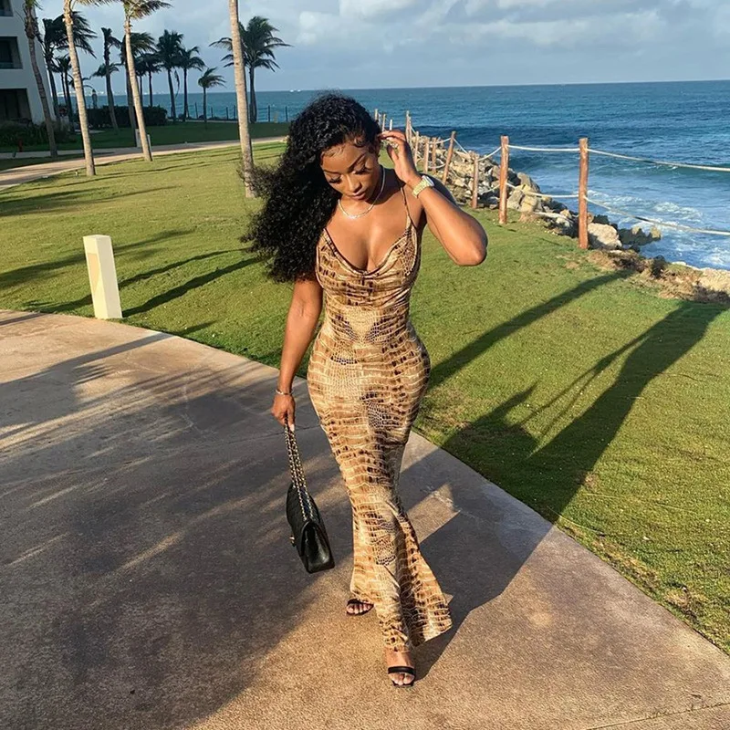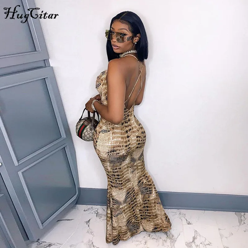 Женское платье-макси без рукавов Hugcitar, с принтом змеи, с открытой спиной, на осень и зиму, модные, сексуальные, вечерние, Клубная одежда, 2020