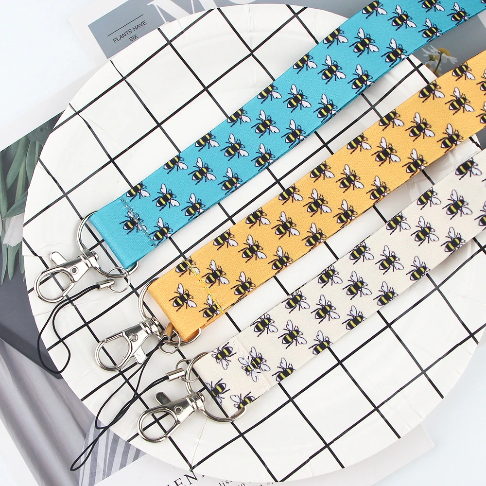 Ransitute R1311 пчелы Футбол в горошек с рисунком божьей коровки картина брелок-шнур шейный ремешок для телефона ключей ID карты Творческий талрепы