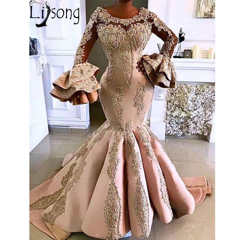 Платье-Русалка для выпускного вечера с тяжелыми бусинами, 2021, длинные Официальные Вечерние платья в арабском Дубае, шикарные платья с аппликацией, вечернее платье