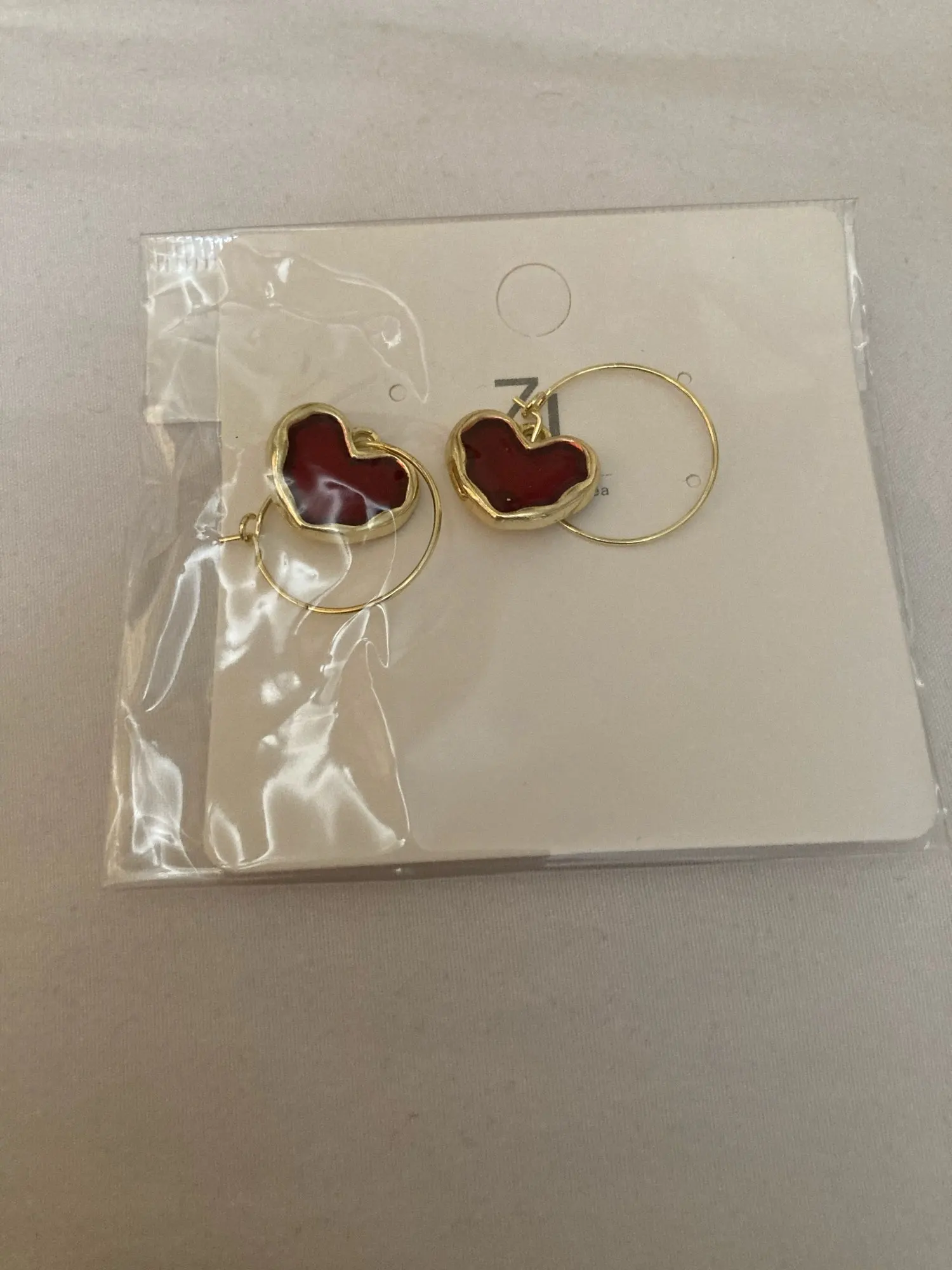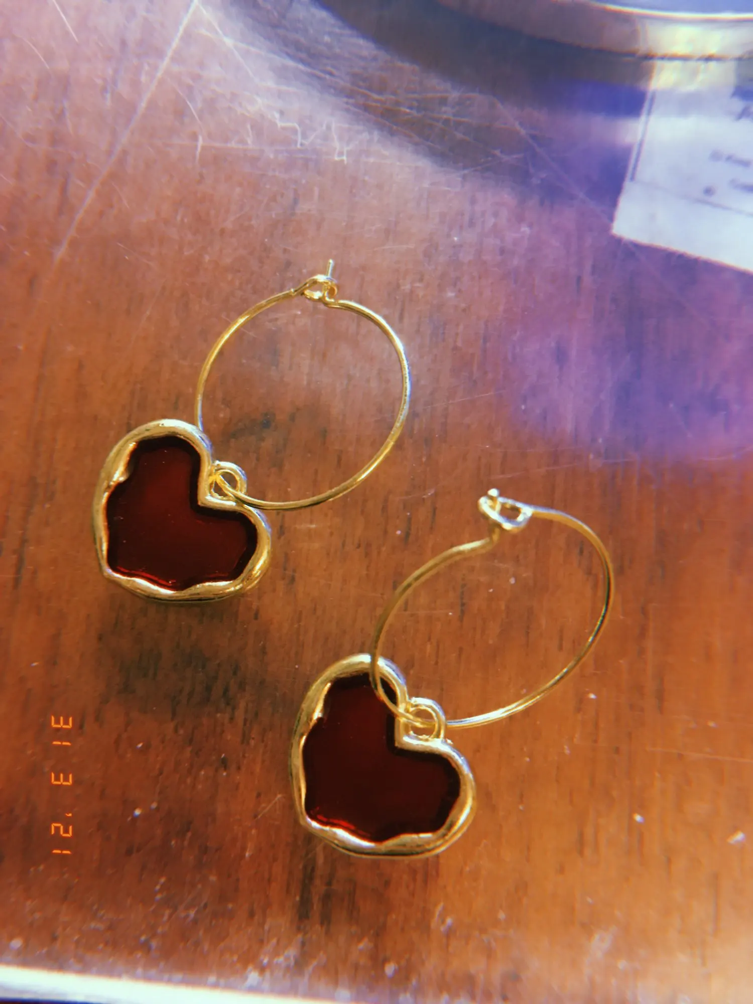 Сережки слишком классные, эти сердечки похоже на печенье с джемом внутри... Колечки достаточно хрупкие, и возможно не очень надежные, но их можно снять и заменить на другое крепление, поэтому в целом они замечательные!! Отправили быстро, доехали тоже