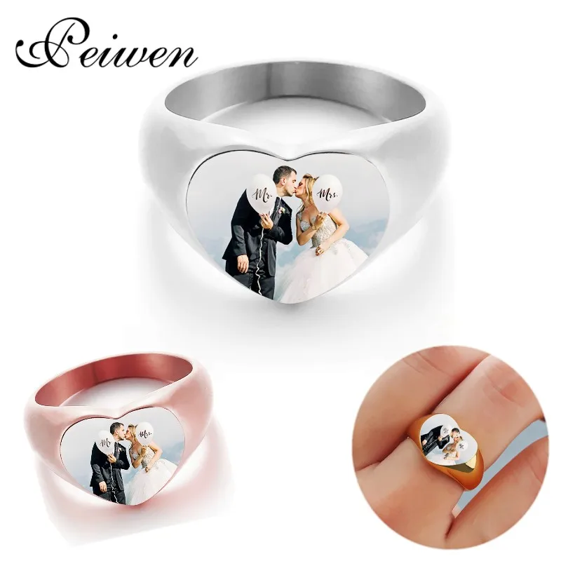Персонализированные Цвет кольцо с фотографией частного пользовательское имя кольца Нержавеющаясталь табличка лазерной гравировки кольцо с фотографией для Для мужчин Для женщин обручальные кольца ювелирные изделия