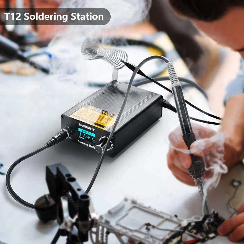 Цифровая паяльная станция T12 с регулируемой температурой, паяльная станция с насосом для удаления припоя, автоматические сварочные инструменты с функцией сна