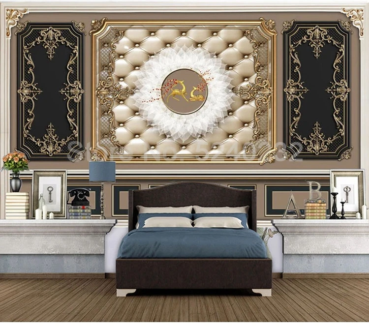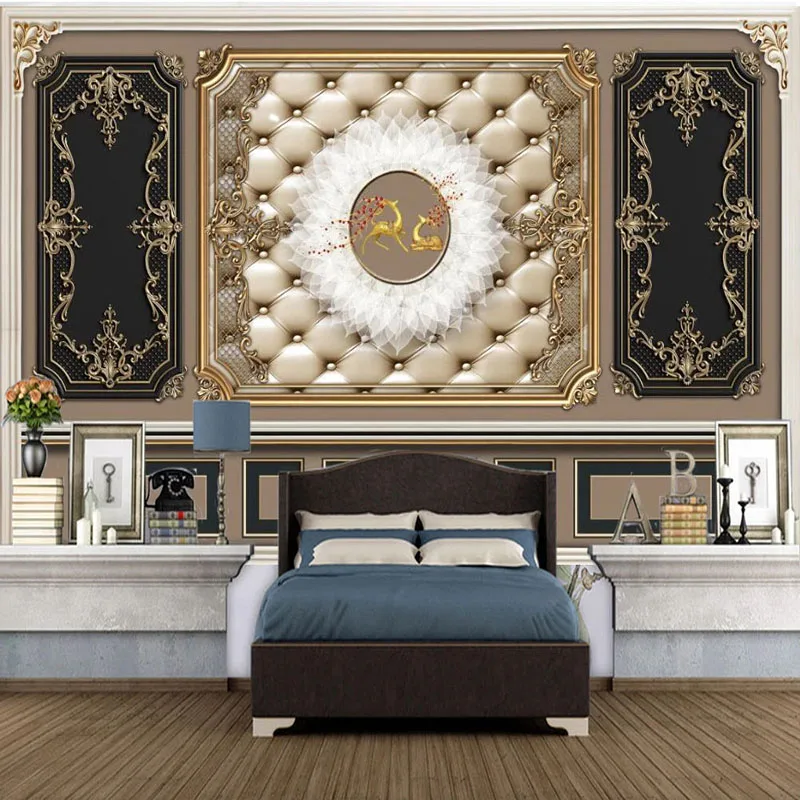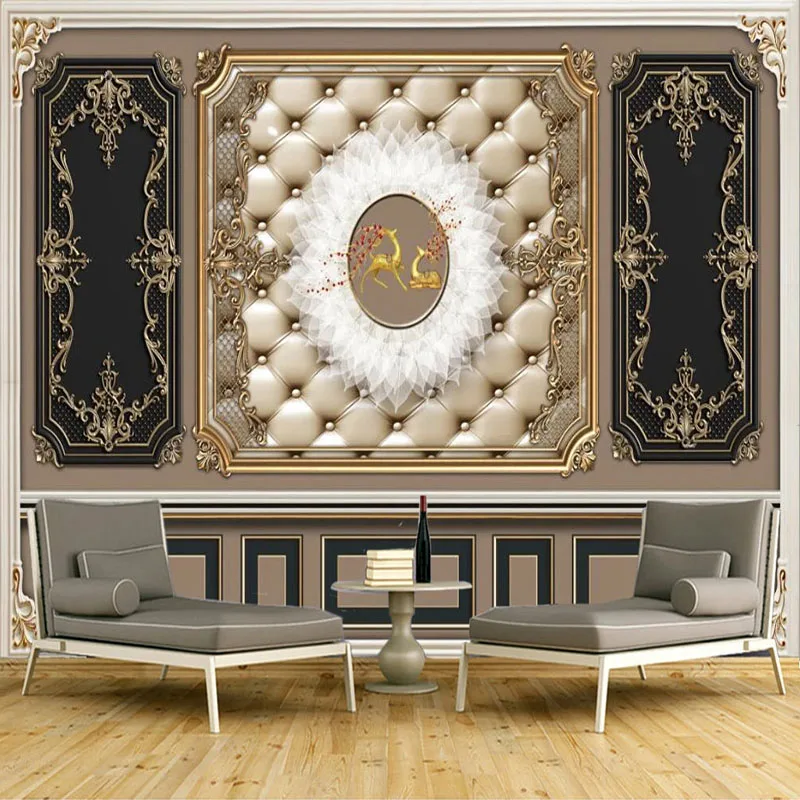 Пользовательские 3D фото обои Европейский стиль штукатурка шаблон мягкий пакет росписи Роскошная спальня гостиная ТВ фон Papier Peint