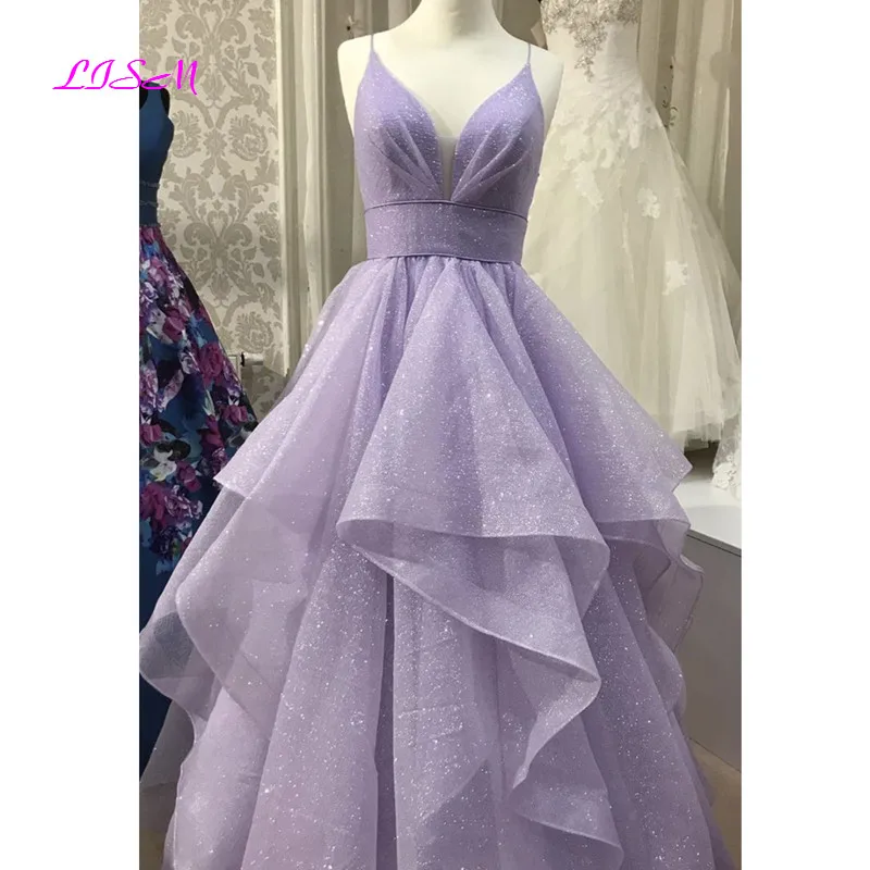 Элегантное фиолетовое Тюлевое длинное платье с V-образным вырезом д...