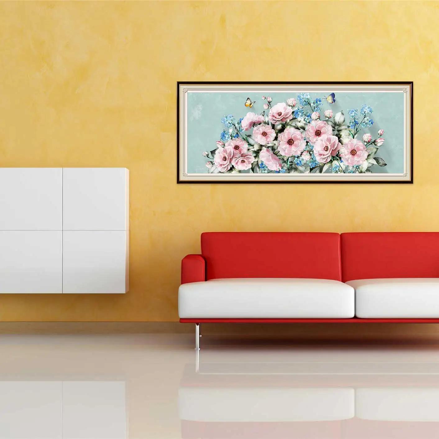 Алмазная мозаика "сделай сам", большие размеры 5 d, розовые цветы, ...