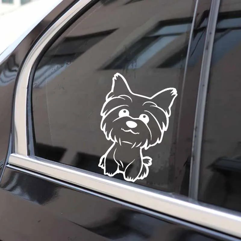 Наклейки на автомобиль, Йоркширские терьеры, милая забавная собака, окна наклейки для автомобиля из ПВХ, черныесеребристые, 10,8 х16 см