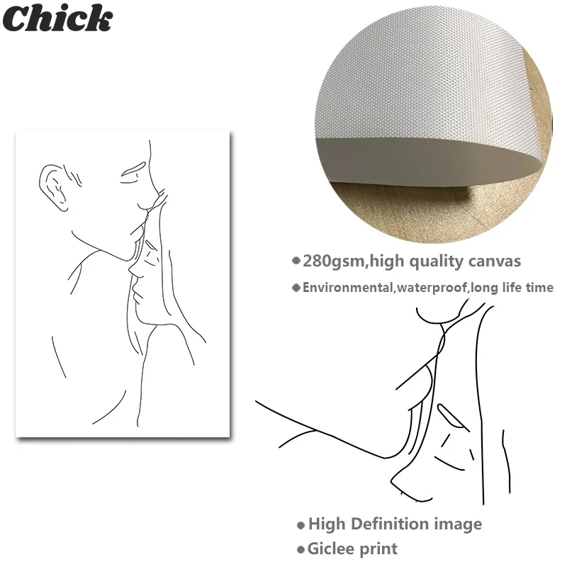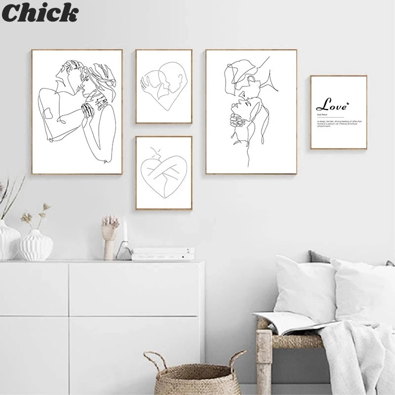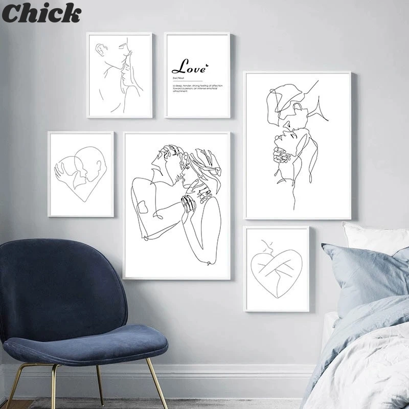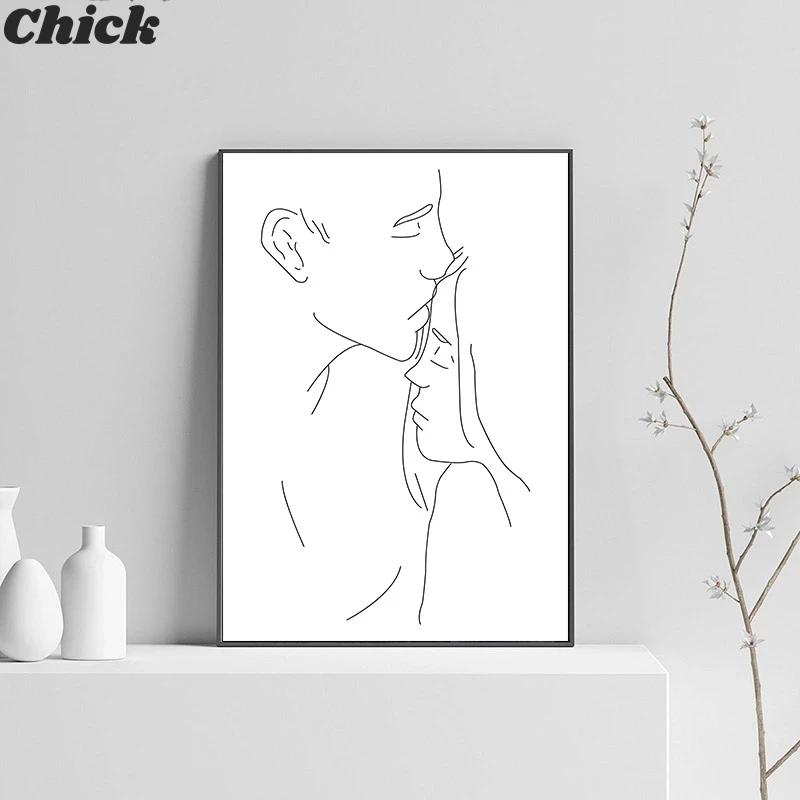 Абстрактный постер для пар, настенный художественный холст с изображением поцелуев, черного и белого цветов, Простой декоративный настенный Декор