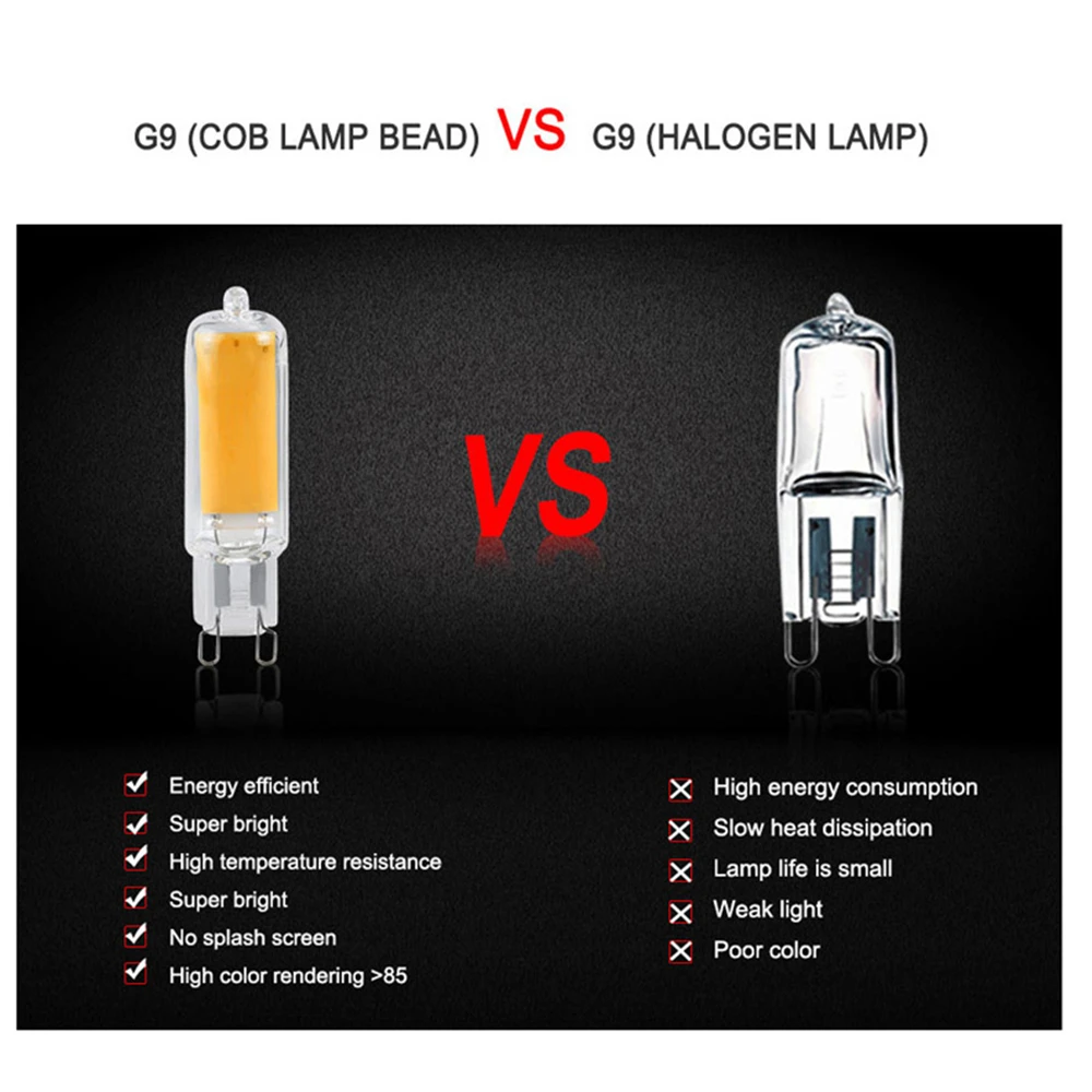 Экономит более 90% за счет электричества освещения. Сверхдлительный срок службы до 20000 часов. Тщательно решите ваши проблемы с частой заменой ламп. Международный стандарт G9 База, подходит для всех светильников G9. Экологически чистый, не содержит токсичных веществ, ртути, УФ-излучения или инфракрасного излучения. Больше защитит ваши глаза.