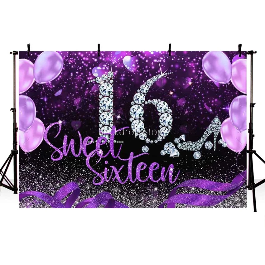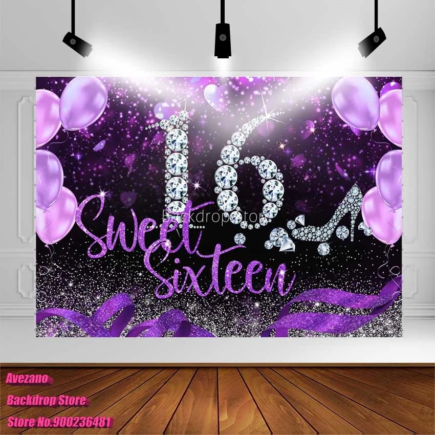 Фоны для фотосъемки Avezano, праздничный баннер на 16 дней рождения, фиолетовые воздушные шары, высокие каблуки, фоны для фотостудии