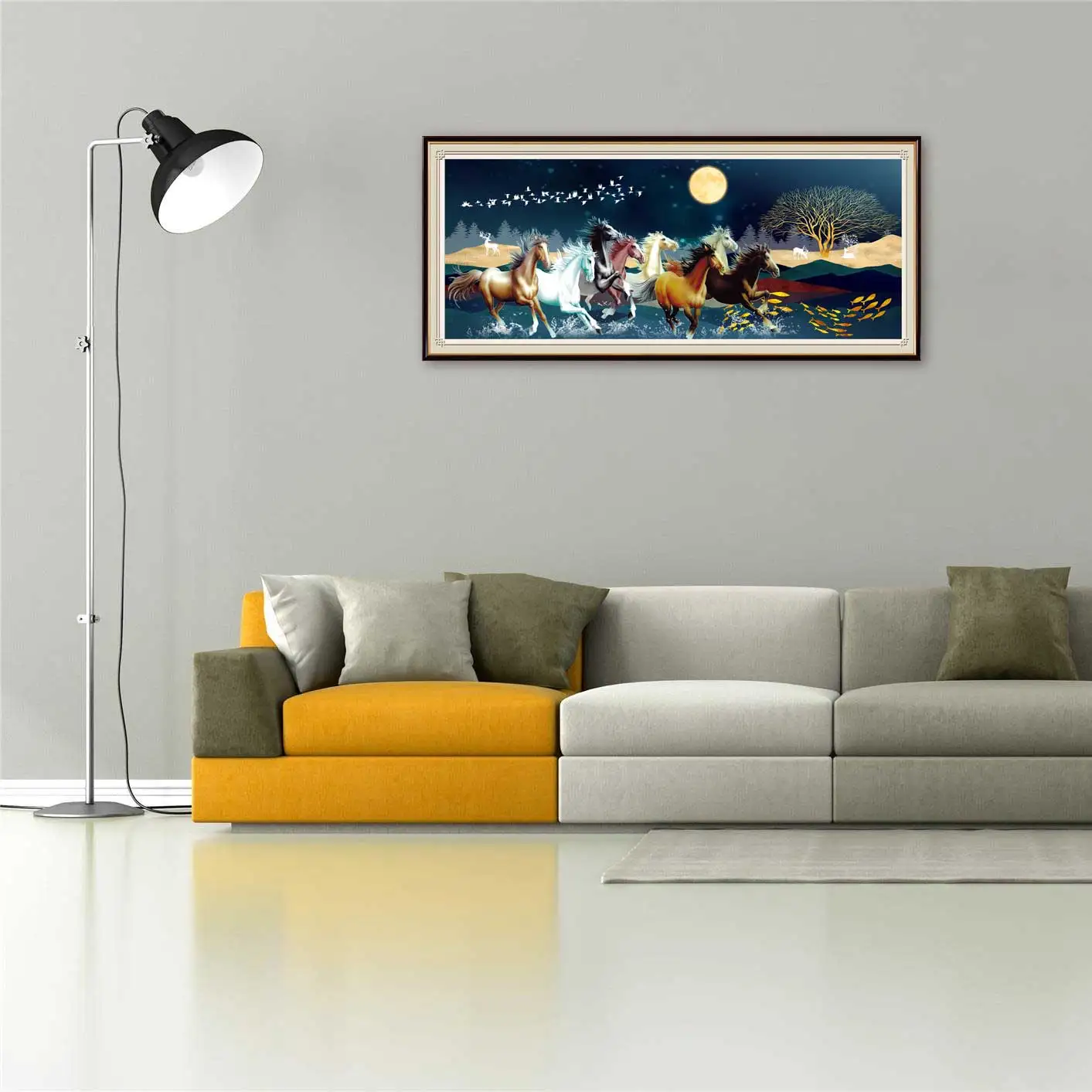 Алмазная 5D картина восемь лошадей сделай сам, полноразмерная, квадратная, круглая, стразы, животные, пейзаж, вышивка крестиком, ручная работа, подарок