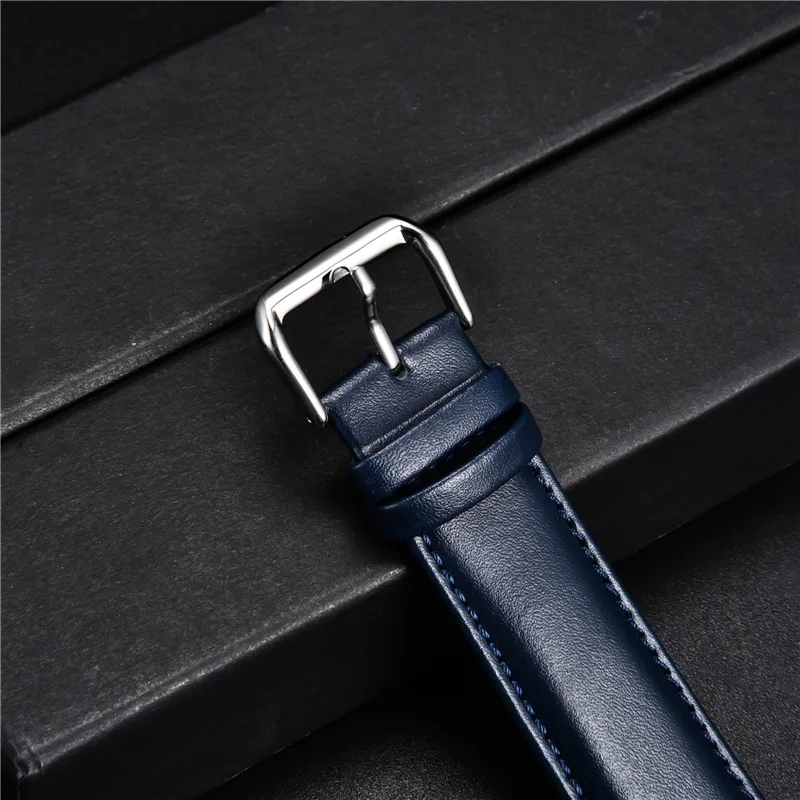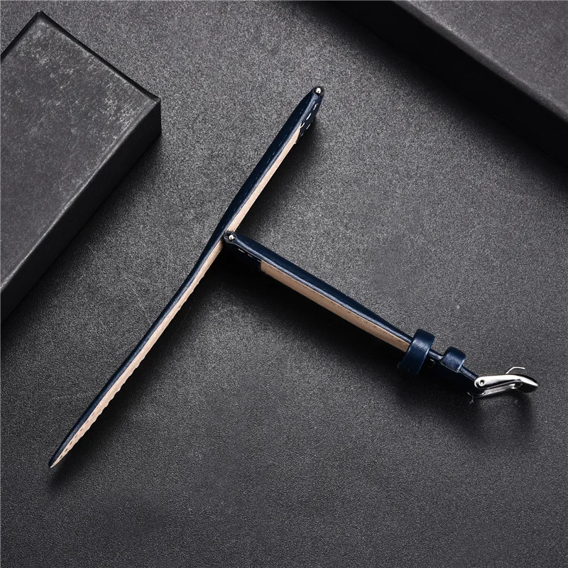 Тип изделия: ремешок для часов Материал ремешка: кожа Цвет пряжки: серебристый Тип застежки: Пряжка Ширина ремешка: 14 мм, 16 мм, 18 мм, 20 мм, 22 мм Длина ремешка: около 20 см Посылка включает в себя: 1 ремешок + Бесплатный подарок (1 инструмент и 2 пружины)