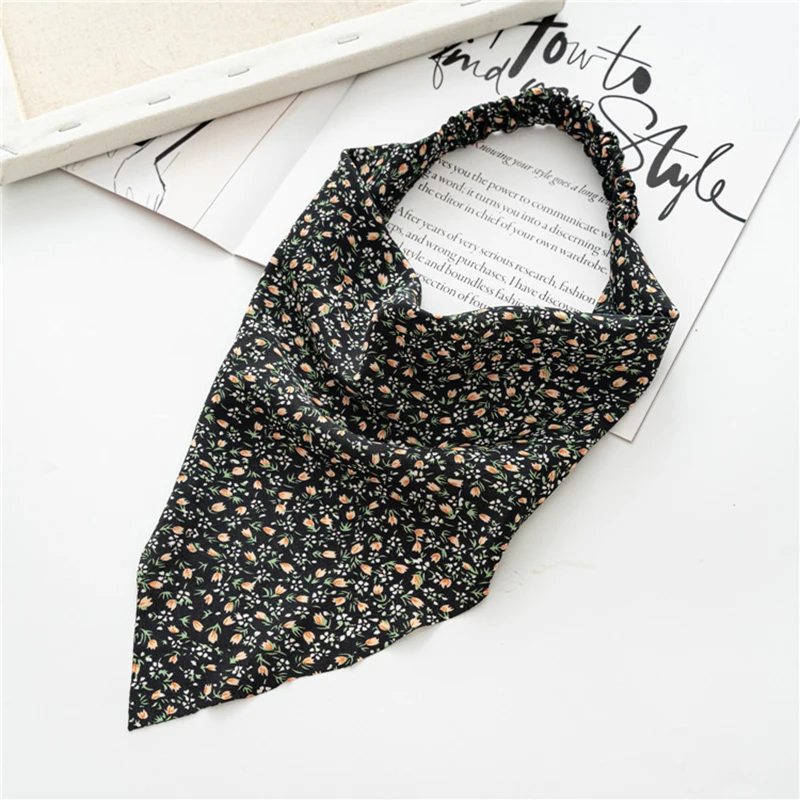 Повязка на голову, шарф, треугольные банданы, повязка на голову без зажимов, с цветочным принтом, эластичные резинки для волос