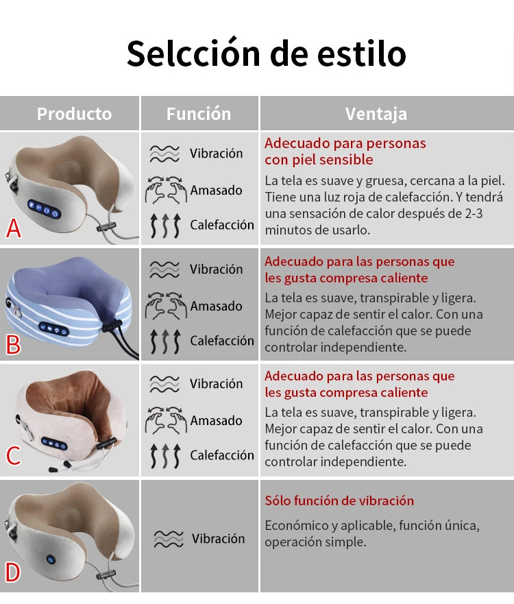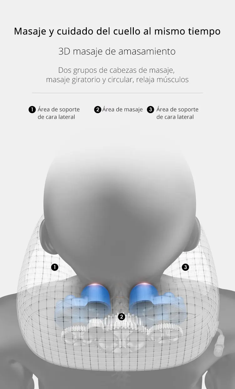 1. Fаcil de llevar: recargable, larga duración de la bateria, oficina/hogar/viajes, puedes disfrutar de la relajación del cuello en cualquier momento y en cualquier 2. El masaje de amasar y vibración bidireccional puede ser аналогичный al masaje que comprescionan las manos de una persona real. El masaje se parara automaticamente en 10 minutos para proteger la salud. 3. Diseño de reducción de ruido silencioso de alta frecuencia, que le permite disfrutar del tiempo de descanso en silencio. 4. Diseño de soporte de cuello en forma de M, soporte cómodo y el cuello de la cabeza, masaje antes de ir a la cama para reducir el estrés.