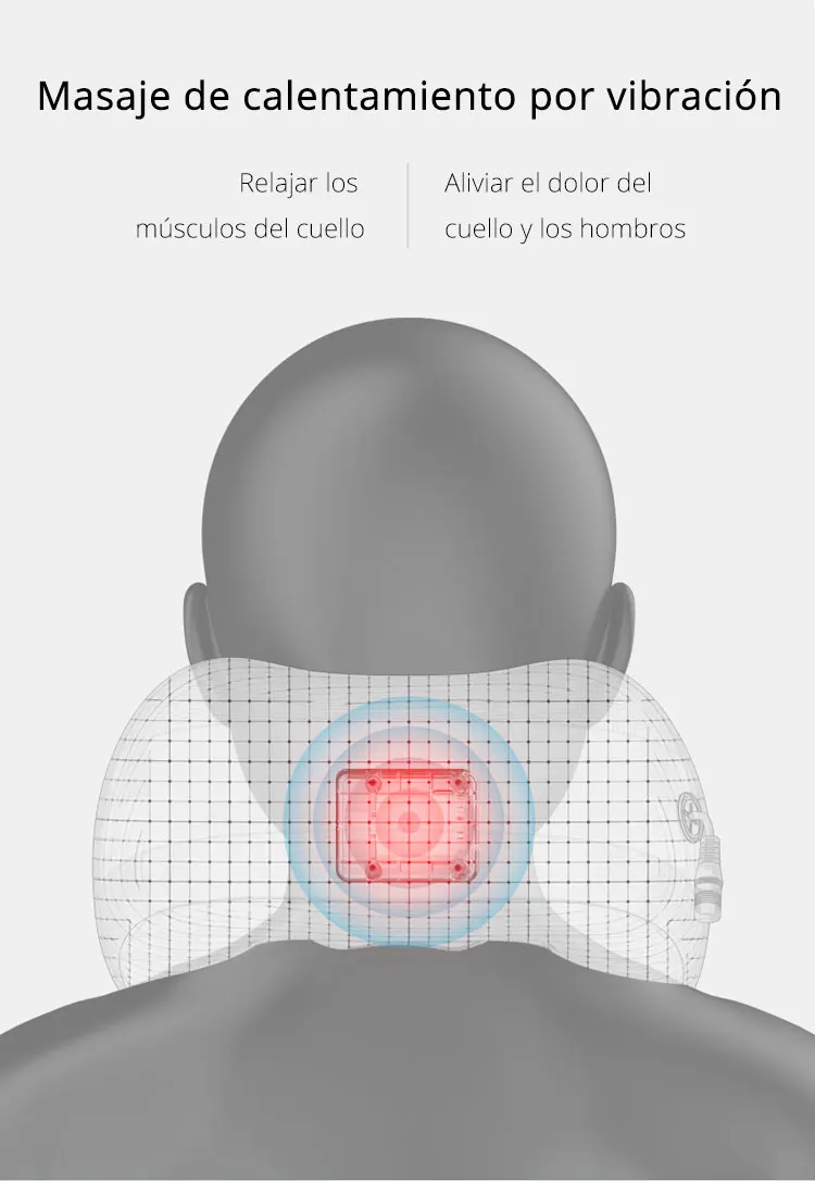 Almohada eléctrica de masaje en forma de U, masajeador portatil multifuncional de la colomna certial del hombro, al aire libre en el coche de casa, masaje de relajación