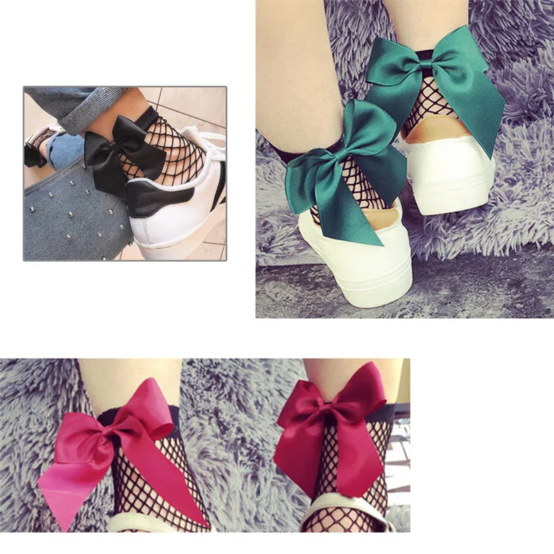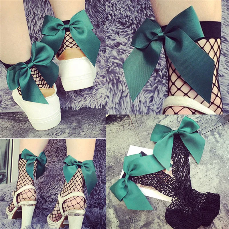 Новые рождественские носки в сеточку для девочек с милым бантом, женские сексуальные черные сетчатые короткие носки до щиколотки, женские носки, 4 цвета