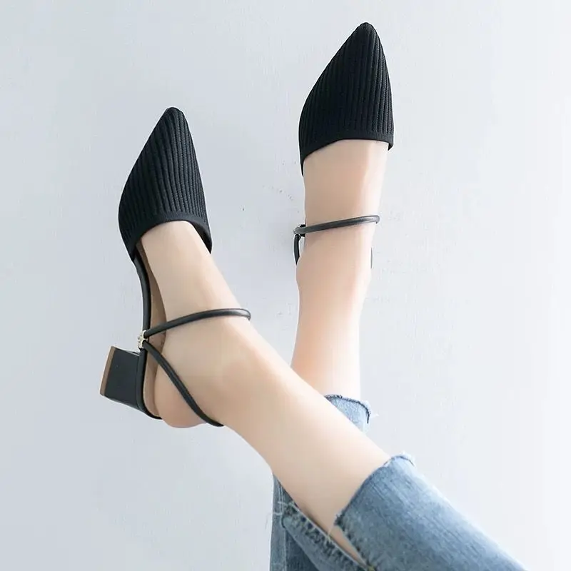 Сандалии женские на толстом каблуке, туфли-лодочки, заостренный носок, средний каблук, большой размер, весна 2021
