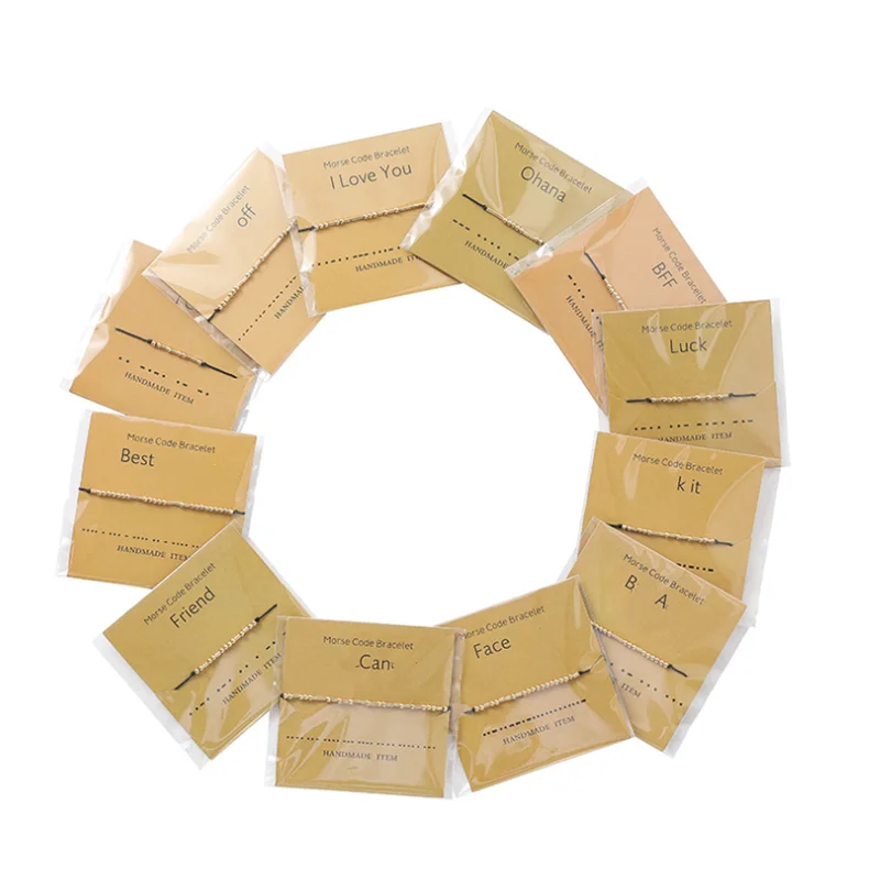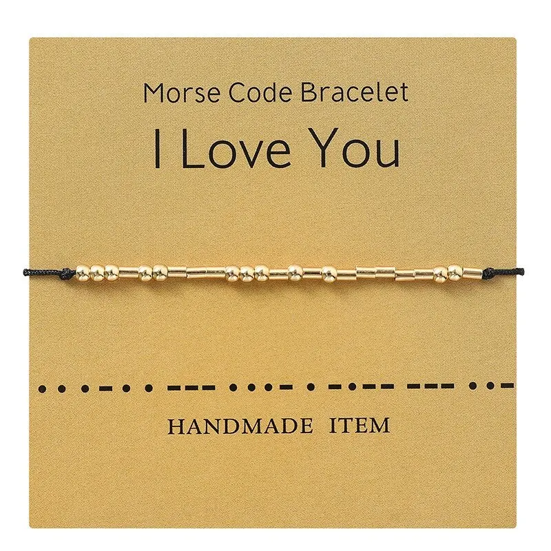 Браслет Morse с надписью, регулируемый, золотой, с картой для дружбы, семьи, ее и его