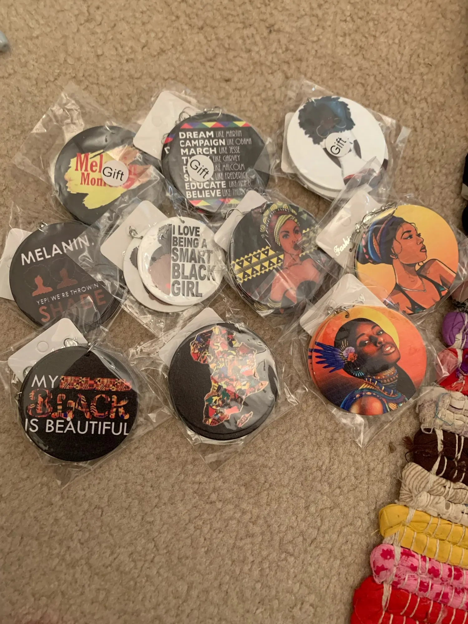 Я был впечатлен Большинством этих сережек, особенно по цене. Некоторые пары сережек с принтом отлично смотрятся, а другие сережки не очень хороши. Я запросил возврат средств на две пары сережек, которые не соответствуют описанной афроцентричной тематике. Возврат был обработан быстро, что я ценю. Мне нравится, что на обеих сторонах сережек есть принт. Одна пара немного меньше, чем другая, но она предназначена для девушки, а не для женщины, так что это нормально. Вы играете с сумкой для захвата. Я уверен, что закажу у этой компании пару сережек по хорошей цене, если это то, что я хотел бы сделать в будущем. Быстрая доставка