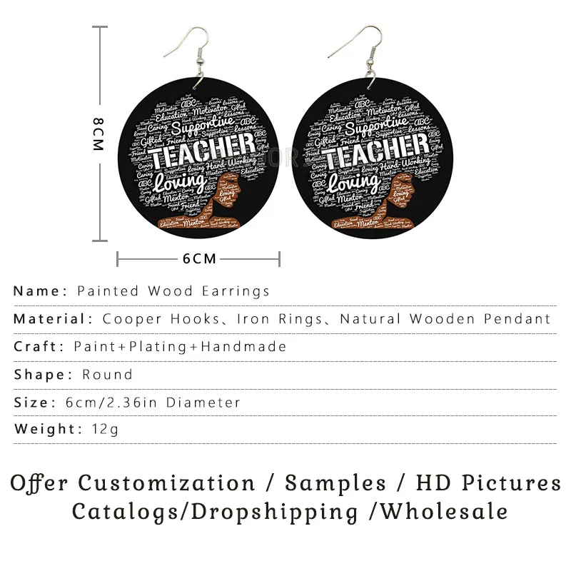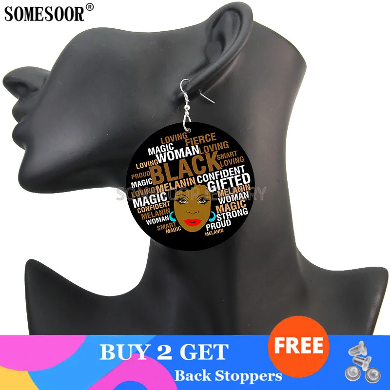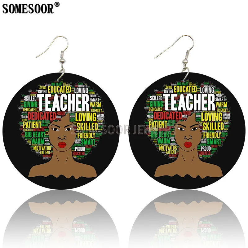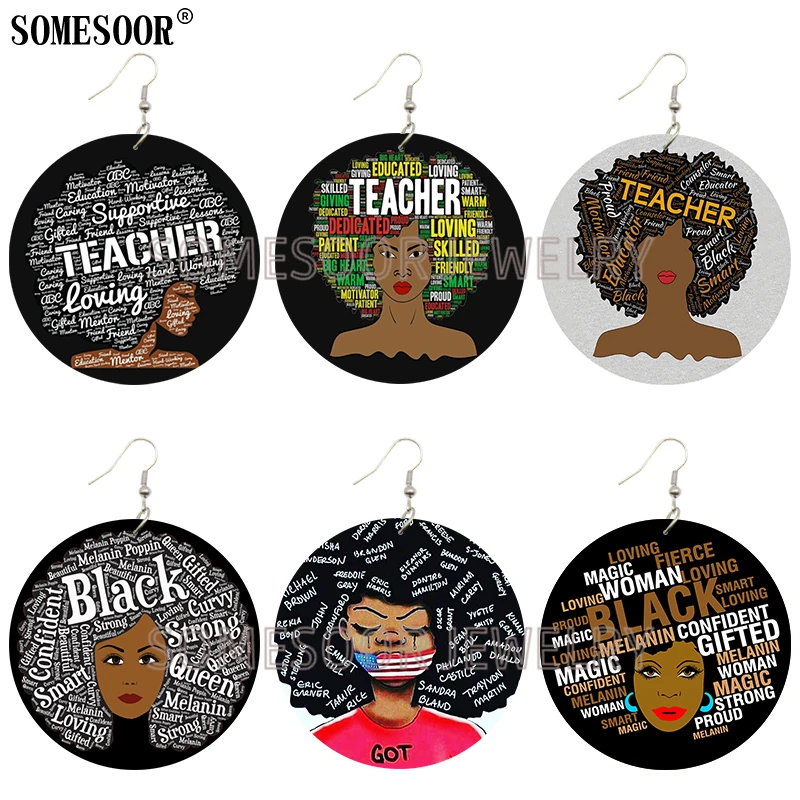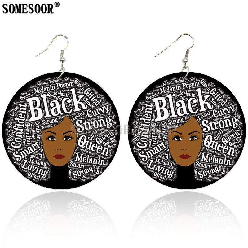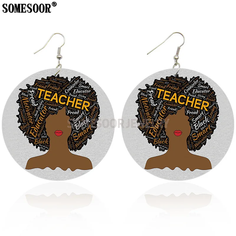 Серьги-подвески женские SOMESOOR, деревянные, с двусторонними принтами
