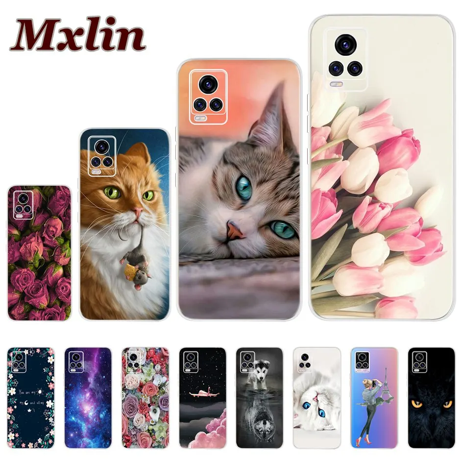 Чехол для VIVO V20, чехол Vivo V20 SE, Модный мягкий чехол с цветочным рисунком кошек для VivoV20 V20SE, чехол s 2020, новый бампер 6,44 дюйма