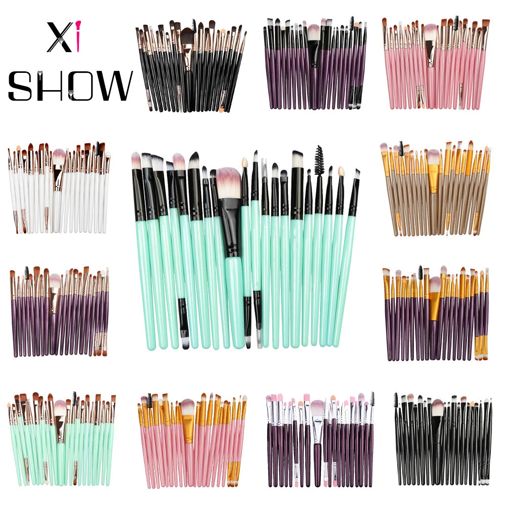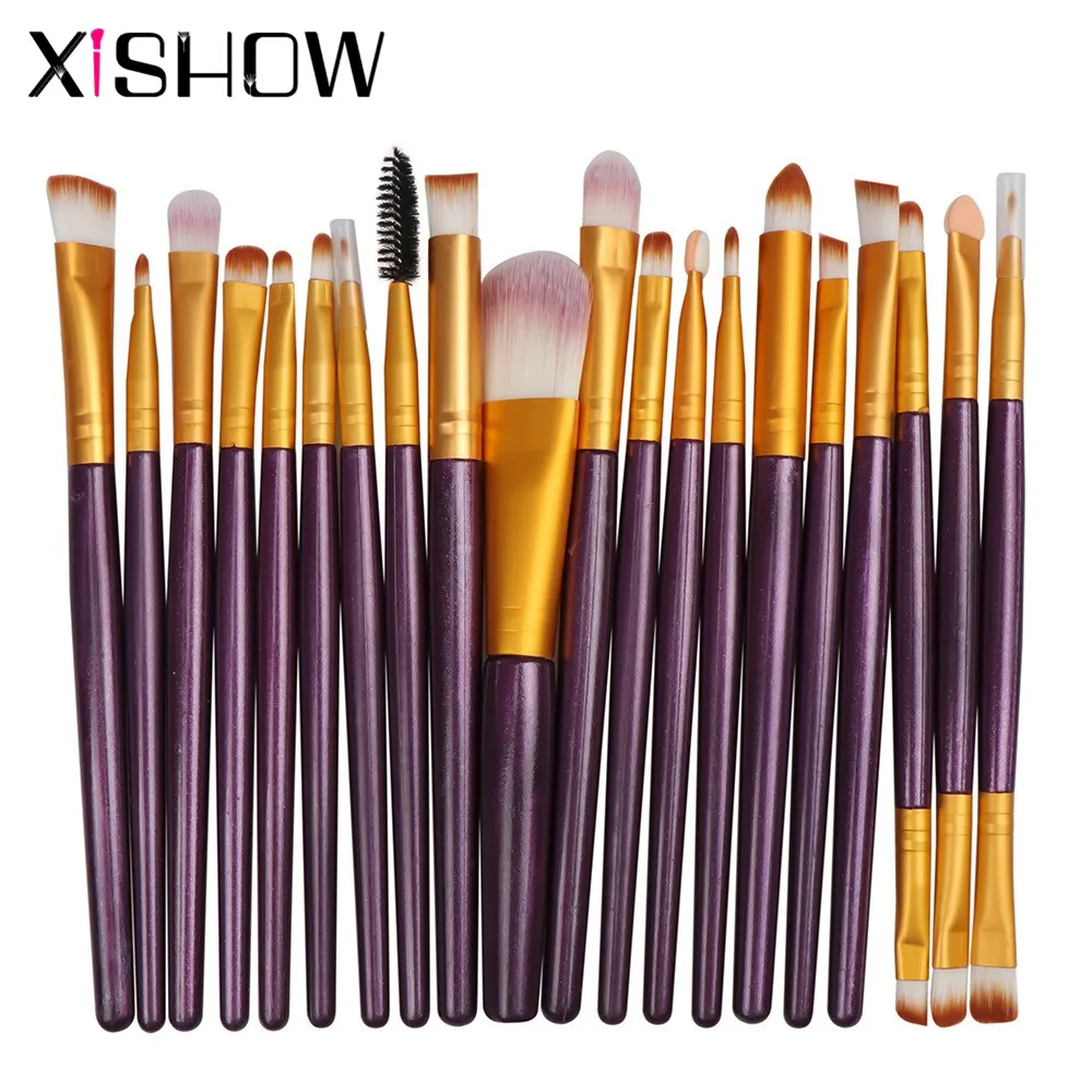 XISHOW 20 штук набор кистей для макияжа Тени для век основа для макияжа пудра подводка для глаз с ресницами, губами Макияж Кисти Косметический набор инструментов для красоты
