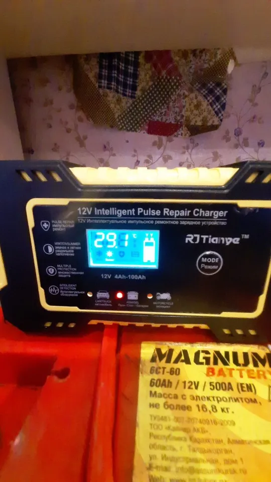 Доставка быстрая. Зарядное устройство работает нормально. Зарядил аккумулятор от своего автомобиля, все в порядке. Для зарядки авто мото аккумуляторов годится на 100%, так как я аккумуляторщик. Покупал для зарядки своих батарей от машины и мотоцикла. Крокодилы более менее нормальные, хотя могли быть и получше, да и провода подлиннее. Дисплей читается не особо, углы обзора не очень. Но это придирки. В целом со своими обязанностями ЗУ справляется, особенно мне понравился режим восстановления. Если сломается закажу такой же снова.
