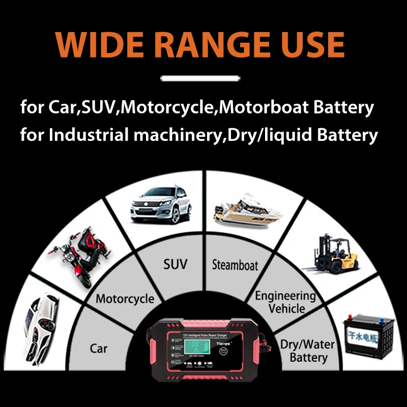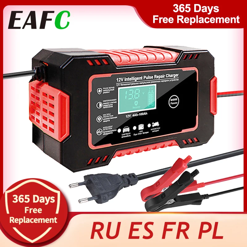 EAFC полностью автоматическое автомобильное зарядное устройство для аккумуляторов 12 В с цифровым дисплеем, зарядное устройство для аккумуляторов Power Puls, Ремонтное зарядное устройство для мокрых и сухих свинцово-кислотных аккумуляторов