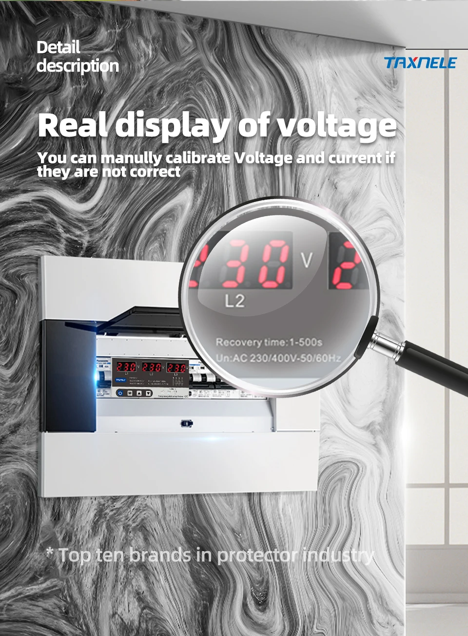 Трехфазный AC 380V 400V 63A многофункциональное устройство защиты под напряжением автоматическое реле напряжения восстановления