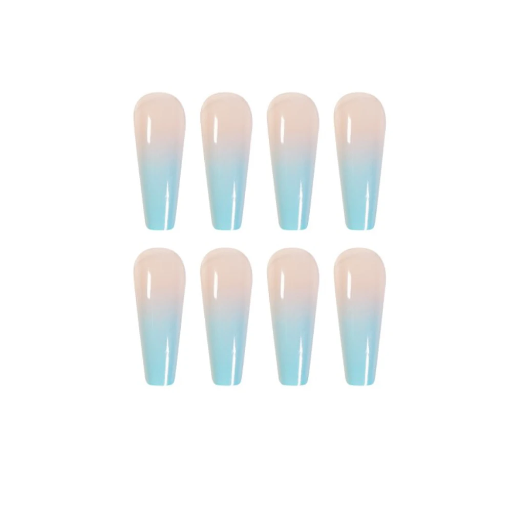 24 шт.кор. градиент поддельные дизайн ногтей Модные накладные ногти полный охват длинные балерина гроб поддельные ногтей, ногти "сделай сам" с клеем
