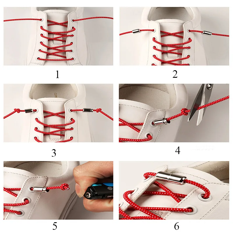 Шнурки эластичные круглые для обуви 1 пара, для детей и взрослых, без завязывания, кроссовки с шнурками, для ленивых, металлический замок
