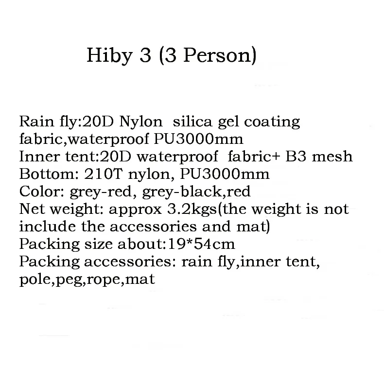Внутренняя палатка: 20D водонепроницаемая ткань + сетка B3