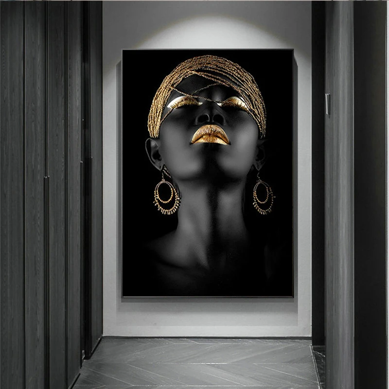 Картина маслом на холсте черная и Золотая женщина, постеры и принты в африканском стиле, Скандинавская настенная живопись для гостиной