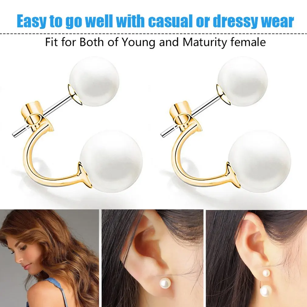 Особенности:100% новый и высококачественныйИзысканная имитация жемчуга дизайнерские серьги обеспечивают очаровательное и популярное ощущение ношения для дам.Особый дизайн и уникальная структура, очень элегантныйСочетайте с подходящей одеждой для разных случаев.Отличный аксессуар и украшение для девушек и женщин.Характеристики:Материал: сплав и искусственный жемчугЦвет: белый, прозрачныйДиаметр: 8 мм (больше), 5 мм (меньше)Посылка входит:1 пара серег (другие аксессуары в комплект не входят)