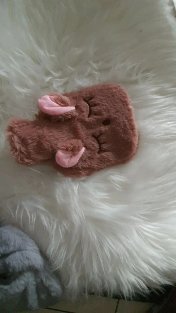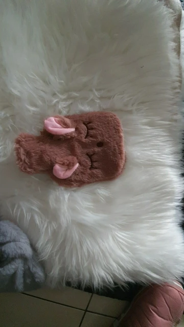 Bouillotte exactement comme sur l'image, c'est amusant et drôle mais vraiment petite comme la main à peut près mais c'était pour le côté mignon que utilitaire, en tout cas satisfait et aucune surprise tout est dit dans la description et sur les images, à voir sur la durée