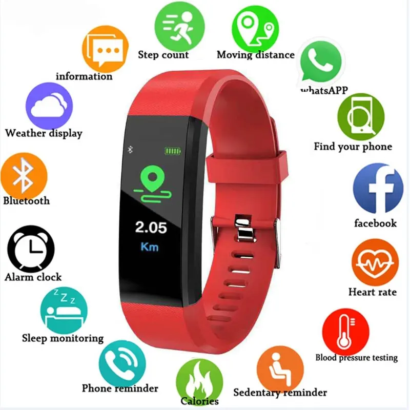 Для присмотра за детьми, 115 плюс Bluetooth механизм Смарт-часы Водонепроницаемый сердечного ритма анализатор шагов для взрослых крови Давление детские часы
