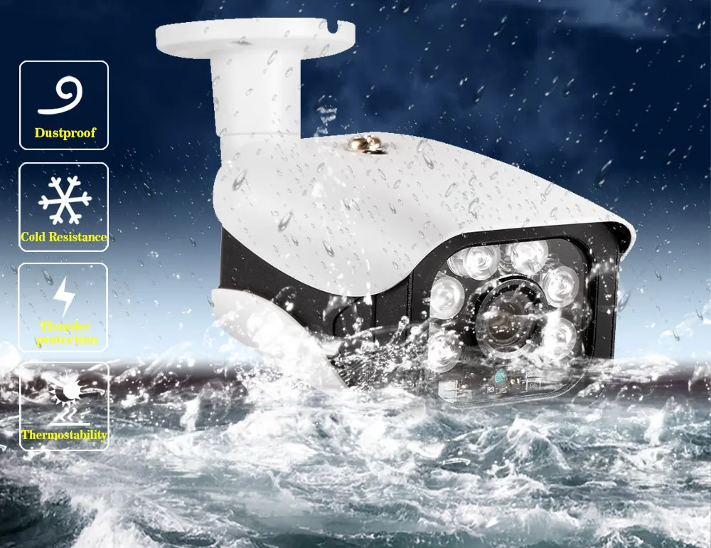Используйте их в качестве наружных камер или крытых камер, так как они построены жестко, выдерживает любую погоду: дождь, снег, пыль и жаркие дни. С защитой от атмосферных воздействий IP66 и кабелями, просвечивающимися через подставку для защиты, гарантируем, что вы сможете ответить на их производительность, день в день. Наша камера имеет сверхпрочный металлический корпус, профессиональный IP66, устойчивый к атмосферным воздействиям, обеспечивая стабильную производительность как внутри, так и снаружи.