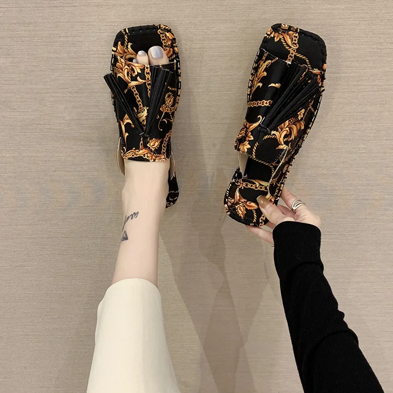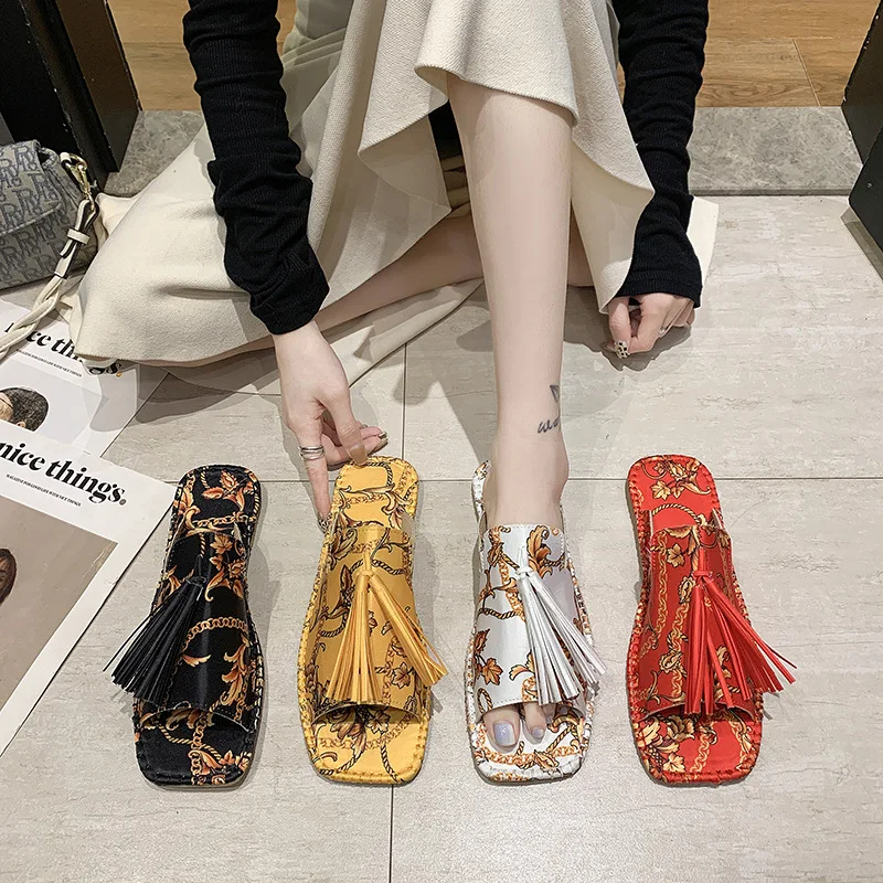 Женские шлепанцы 2021, модная летняя обувь с кисточками, брендовые пляжные сланцы, ретро мюли, женская уличная обувь