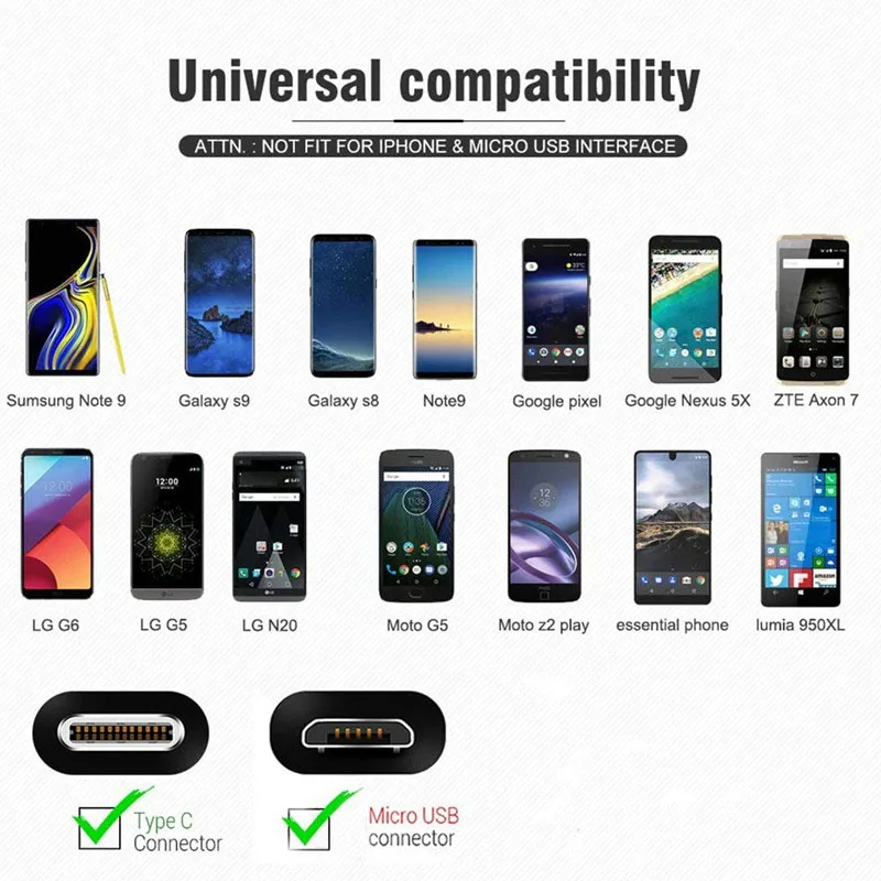 Зарядное устройство Micro usb Type-C для Samsung A11, S7 Edge, S8, ...