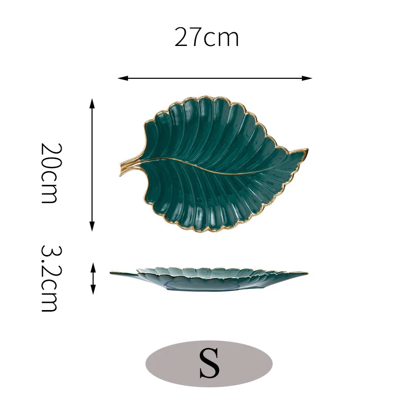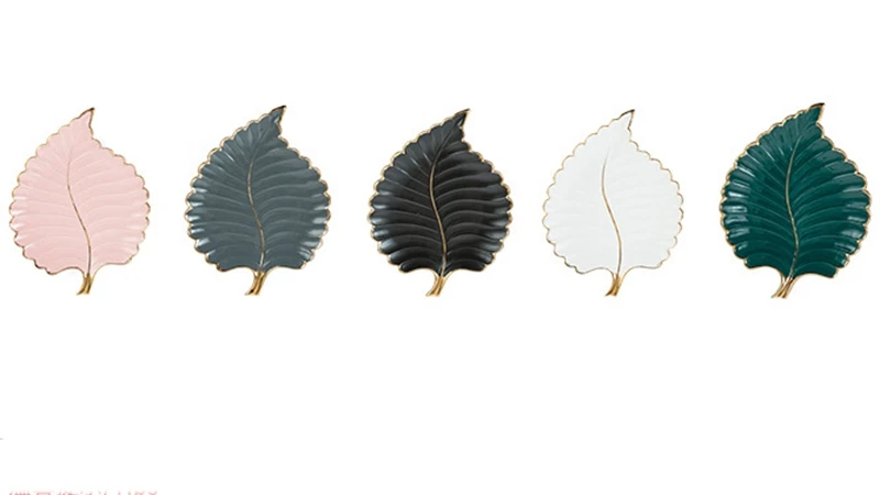 Посуда керамическая обеденная в скандинавском стиле, тарелка с инкрустацией золота, листья, листовые пластины для хранения ювелирных изделий, суши, модная посуда