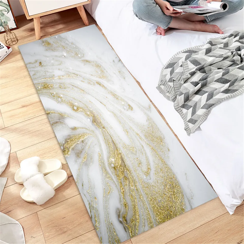 NameFashion White Gold Marble Bedside Mat Bedroom