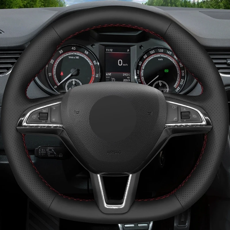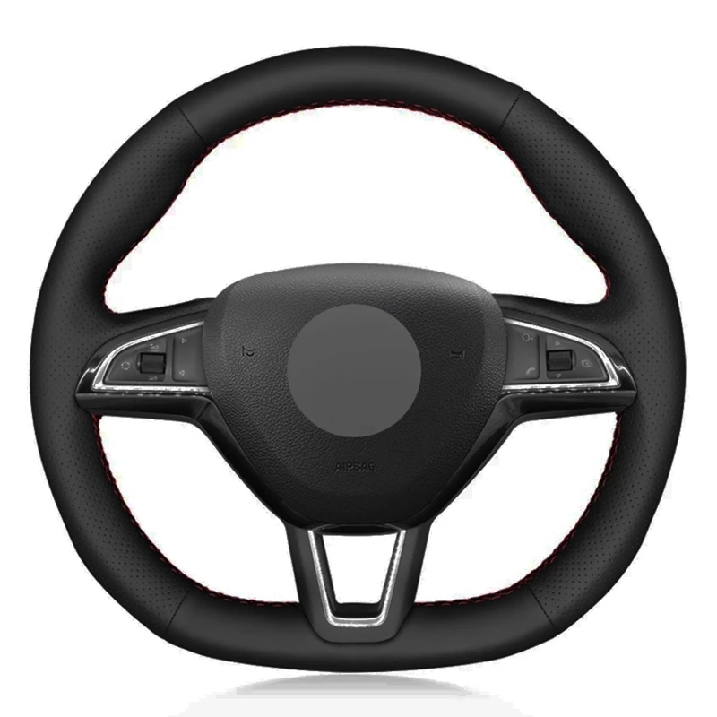 Чехол рулевого колеса автомобиля черная натуральная кожа для Skoda Octavia RS Citigo Fabia Scala Karoq Kodiaq Citijet Superb 2015-2019