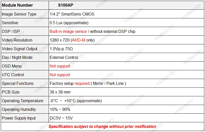 (2)ФиксированныйAHD-M выходной сигнал, не может настроить на аналоговый CVBS сигнал, не поддерживает аналоговые CVBS устройства (TV / DVR и т. д.).