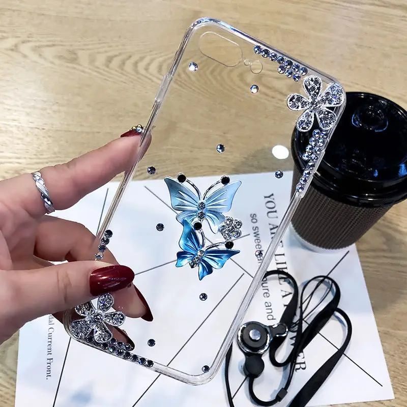 Чехол с бабочками и камнями для Samsung Galaxy A30, A10, A40, A70, Note 9, 8, A60, A50, S10Lite, S10E, S10, S9, S8Plus, M10, M20, M30, чехол со стразами