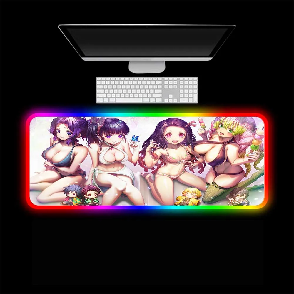 Коврик для мыши с аниме рассекающий демонов RGB, большой компьютерн...
